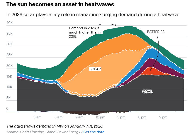 “What has changed is how the system absorbs that challenge. Solar now carries much of the heat-driven load during the day.”